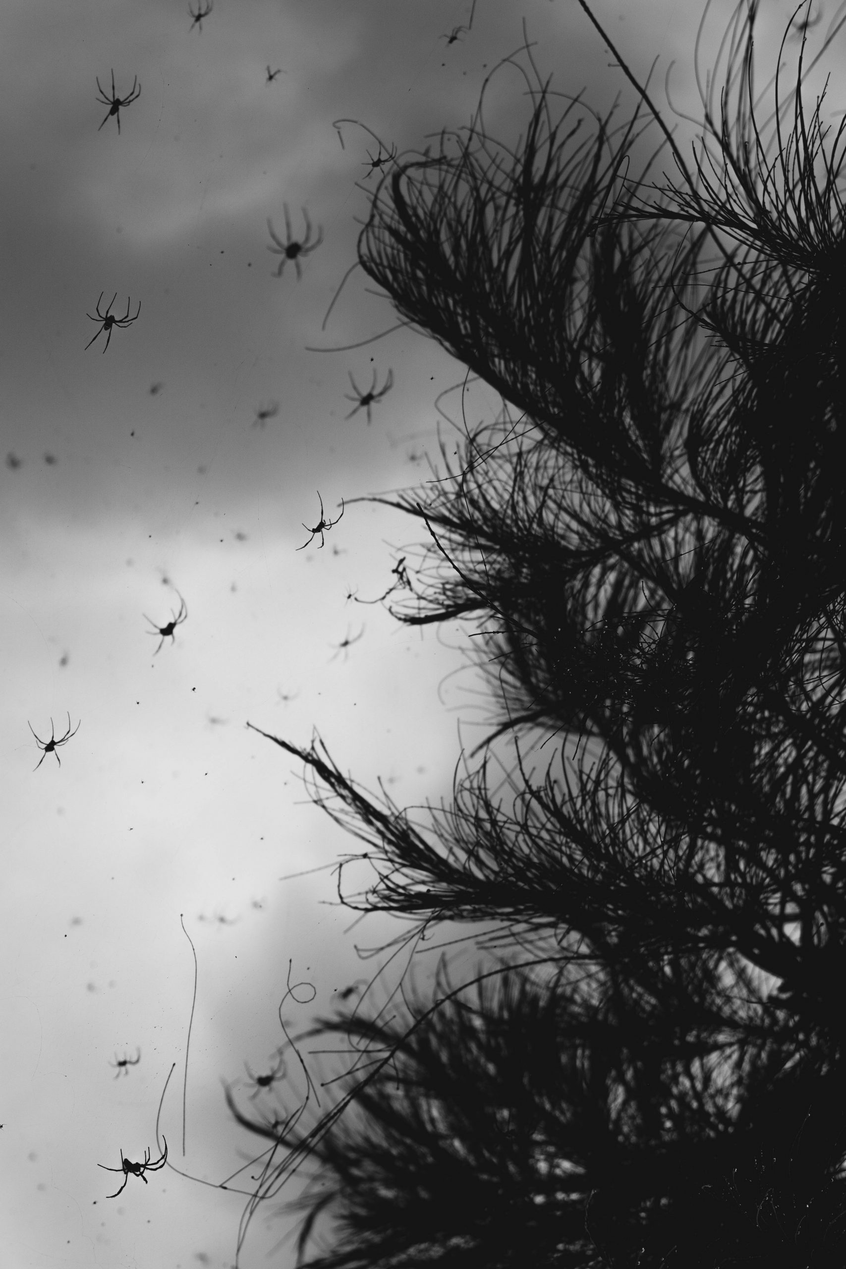 Palm trees are spiders jumping of the clouds. Then there are spiders jumping of trees.